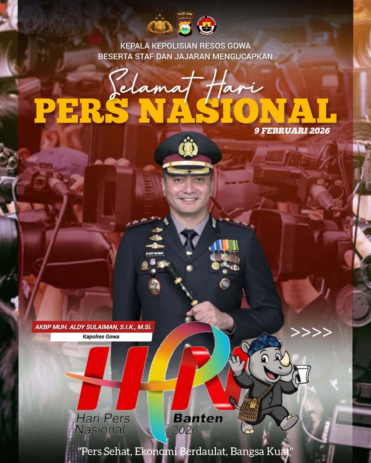 ππππ | πππππππππππππ.ππ².ππ – Kepala Kepolisian Resor Gowa, AKBP Muhammad Aldy Sulaiman, S.I.K., M.Si, bersama staf dan seluruh jajaran Polres Gowa menyampaikan ucapan Selamat Hari Pers Nasional (HPN) yang diperingati pada 9 Februari 2026, Senin (9/2/2026).